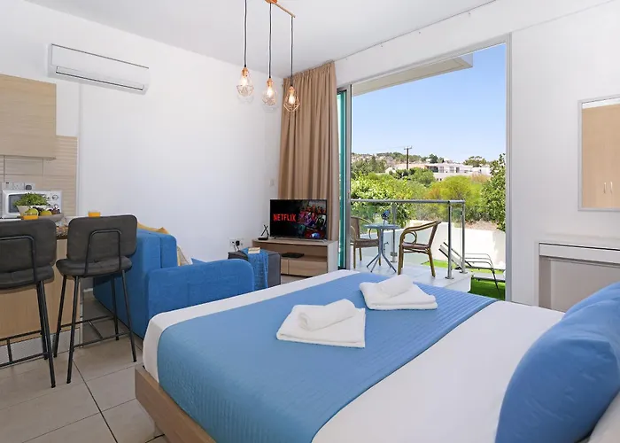 الملكية على بعد 10 دقائق بالسيارة من شاطئ كونوس و 15 دقائق قيادة من شاطئ ترينيتي. 15 دقائق من مركز مدينة بروتاراس. يقدم للضيوف الأطباق الالأوروبية، La-Pas Cocktailbar يبعد حوالي 500 متر. منتزه باركو بالياستو لونا تقع بجوار الفيلا.